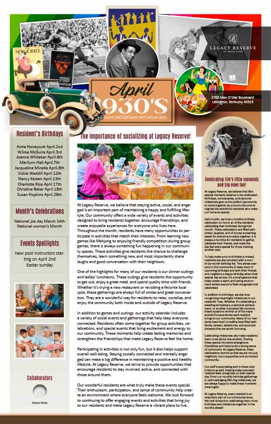 Senior Care News at Legacy Reserve at Fritz Farm in Lexington, KY