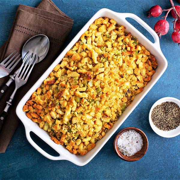 Bake stuffing 20 minutes. Uncover and continue to bake until top is golden brown and crisp, 25 to 30 minutes more. Serve warm or at room temperature.