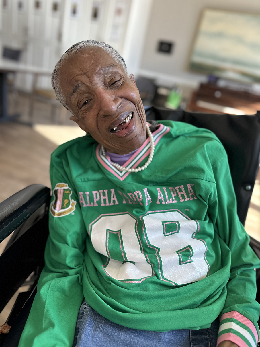 Geraldine Wiley is our resident of the month for February. We all know her as “Gigi” here at Legacy. She has been part of the Legacy Ridge community for 5 years. She is a joy to be around even in her silence there is warmth of comfort. You can catch some smiles and even “yeaaaa” especially when there is a good beat on like Earth Wind and Fire.