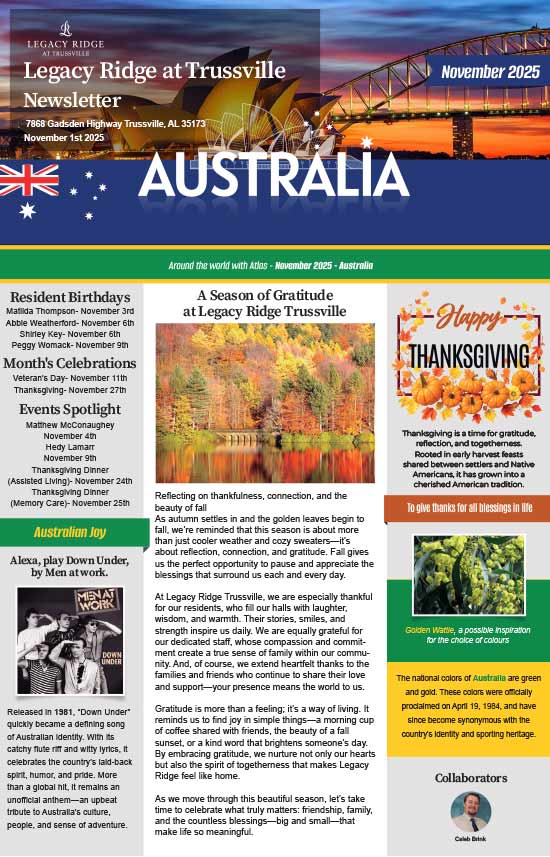 Please note that Legacy Ridge at Trussville and its parent company, Atlas Senior Living, use cookies as outlined in Atlas Senior Living’s Privacy Policy, where you can individually opt out of this practice. By continuing to browse Legacy Ridge at Trussville’s website, you agree to its use of cookies.