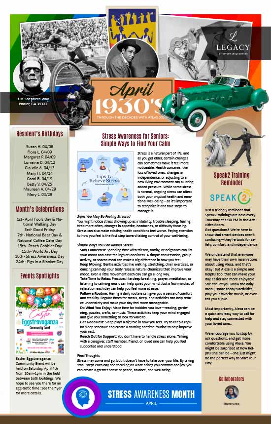 Senior Care News at Legacy at Savannah Quarters in Pooler, GA