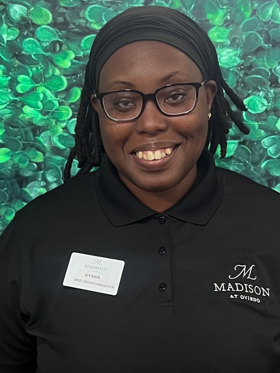 We are beyond pleased to shine some light on our April employee of the month, Ayana Troutman. She has been with us for just over a year now as a caregiver and we are so grateful to have someone who’s never scared to go the extra mile whether it’s for the team or our residents. When she’s not here working hard, you can catch her watching her favorite show and taking care of her sweet daughter. Ayana loves her job because it allows her to help others, learn about many different cultures, and build strong connections with the people around her. Her go to drink in the morning is an energy drink over coffee or tea, and to wrap up a good day she would get her favorite food pasta. She has always worked in healthcare but if Ayana switched departments for a day, she’d like to try out HR (Human Resources). Thank you, Ayana, for your amazing attitude every day, your hard work, and for never being afraid of a challenge.