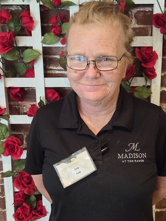Our April Associate of the Month, Judy Hampton, is a valued member of the team at Madison at The Range, where she works as a cook and brings joy to others through her love of cooking and baking. Judy is incredibly creative and enjoys crafting of all kinds, as well as gardening—especially tending to her favorite flowers, roses and daisies. Originally born in Detroit, Michigan, she was raised in Cullman and Huntsville, Alabama, and has built a life rooted in family, compassion, and dedication to others.
