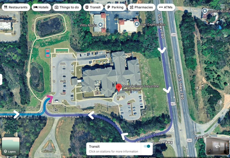 Home » Contact Us » Map & Directions Map & Directions to Monark Grove Greystone Arrive on Farley Ln 1 of 2« PreviousNext » Arrive on U.S. Hwy 280 2 of 2« PreviousNext » Join Our VIP List CONTACT US