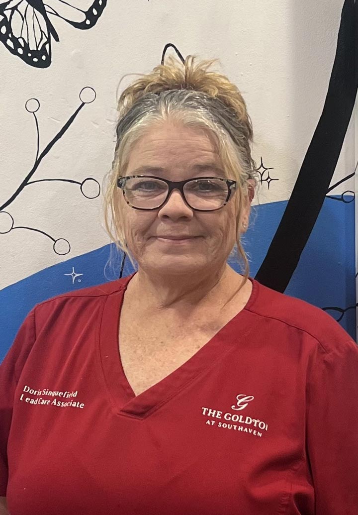 Doris Sinqufield, our employee of the month, is a creative force to be reckoned with. As one of our lead Room Assistants, she has been a part of the Goldton at Southaven family for twelve years. Her creativity shines through in the community decorations she dreams up for Holidays like Christmas and Halloween, inspiring a festive spirit in all of us. Her advice for those in her field is to be patient and reliable, as residents rely on us. Outside of work, she enjoys building Star Wars Lego Sets and participating in holiday cheer by creating creative holiday wreaths. Please help us in congratulating Doris!