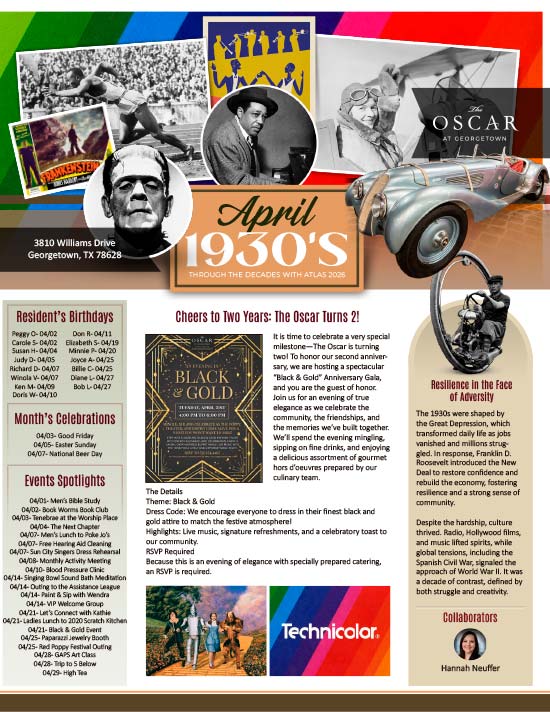 Senior Care News at The Oscar at Georgetown, TX Explore the latest issue of our The Oscar at Georgetown newsletter or check out our past numbers by selecting the issue below: December 2025 November 2025 October 2025 September 2025 August 2025 July 2025 June 2025 May 2025 April 2025 March 2025 February 2025 January 2025 Independent Living Assisted Living April 2025