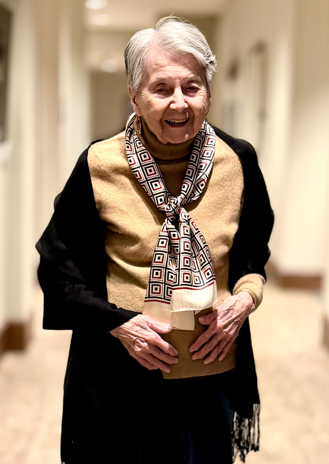 Christine is originally from Shenandoah, Pennsylvania. She grew up with her mother, 3 older sisters, 2 older brothers, and her Aunt Millie. Growing up, she enjoyed ice skating on the football field and playing at the park. Christine married her husband on April 25th, 1953, and they were married until his passing in 2017. Together, they had 3 children. Christine worked in the trust department at National Savings & Trust in Washington, D.C. Her husband was an accountant who also served in the US Army (served in Germany during the Korean War). She was highly involved with her church and volunteered in numerous ways, including baking, crafts, and sewing altar covers and vestments for altar boys. Christine enjoys sewing, knitting, watching old movies, and shopping. Some of her favorite movies are Fiddler on the Roof and Dr. Zhivago. She enjoys listening to Christmas music and The Dorsey Brothers. She also enjoys playing Pinochle.