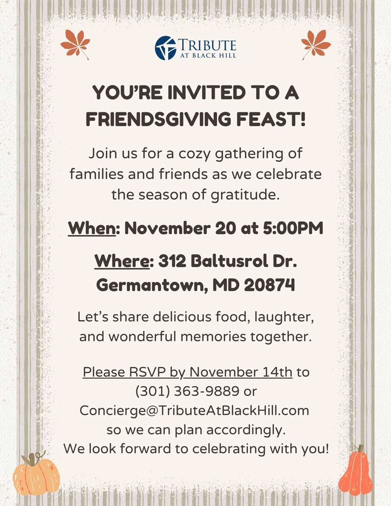 Join us for a Friendsgiving at Tribute at Black Hill!