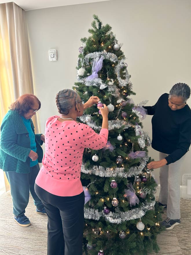The resident absolutely loved decorating the tree; it became a joyful adventure filled with laughter and creativity! Each ornament added a splash of color, and the whole experience was pure delight. The resident had a lot of fun decorating the tree; they had so much fun