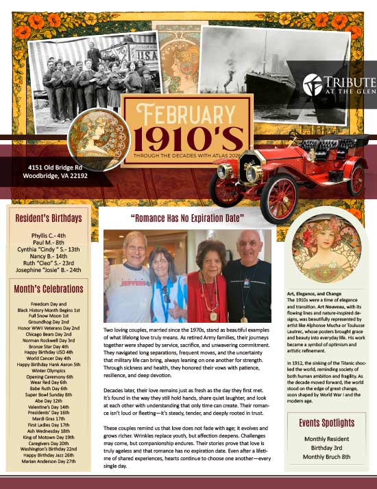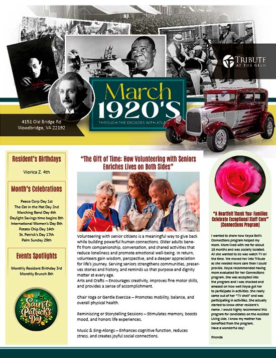 Home » Lifestyle » Newsletter Senior Care News at Tribute at the Glen in Woodbridge, VA Assisted Living Newsletter Memory Care Newsletter