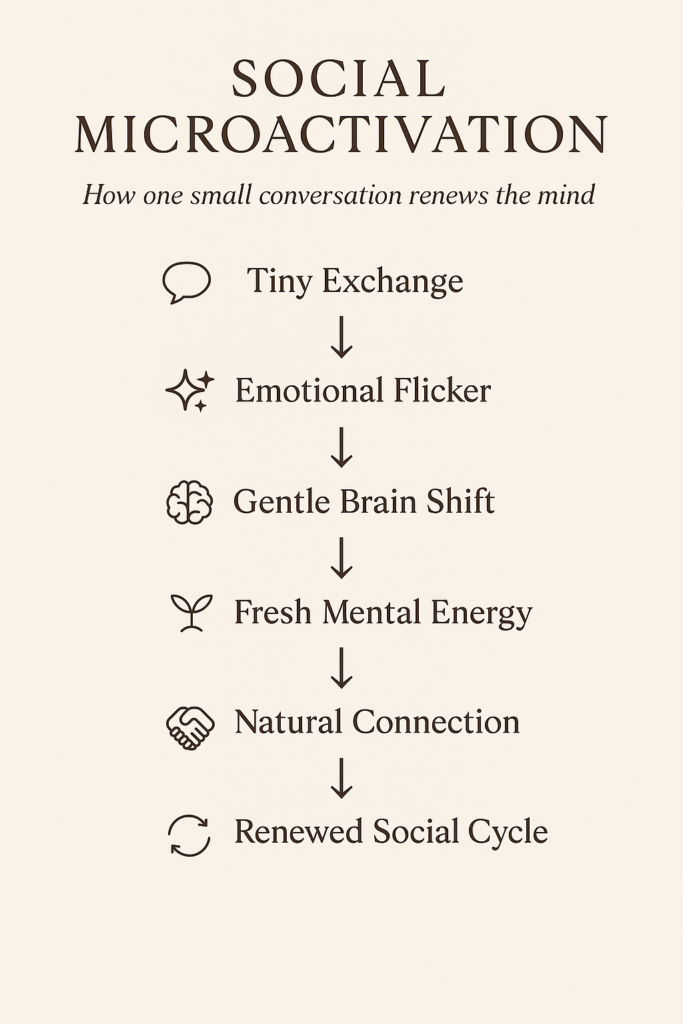 Researchers describe this effect as “social microactivation.” It is the phenomenon where short interactions increase dopamine, improve attention, and enhance overall engagement with the environment. Adults who experience these microactivations show better cognitive performance and stronger emotional stability throughout the day.